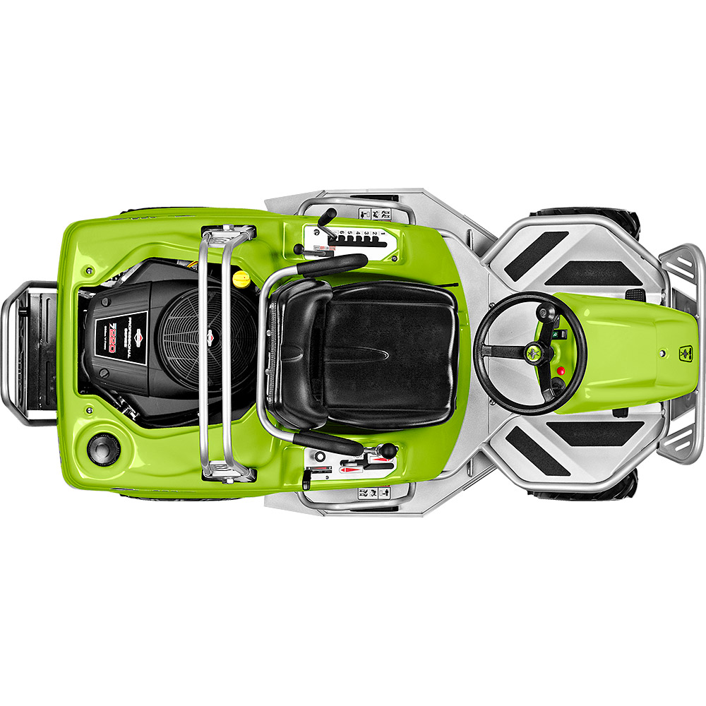 L’innesto delle lame si effettua tramite un pulsante elettrico situato vicino al volante. L’altezza di taglio, da 35 a 85 mm, si regola dal sedile di guida con una leva a 6 posizioni di taglio; la stessa leva dispone di un’ulteriore posizione per il trasferimento che consente di sollevare maggiormente l’intero apparato di taglio da terra, interrompendo automaticamente la rotazione delle lame per superare agevolmente cordoli ed ostacoli. La tensione della cinghia del piatto è autoregolante. L’intero apparato di taglio è mantenuto sempre parallelo al terreno rendendo migliore la qualità di taglio anche dopo anni di utilizzo.