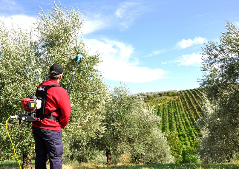 Le attrezzature ad alimentazione elettrica, come gli abbacchiatori per la raccolta delle olive, hanno un’autonomia di lavoro limitata, che dipende dalla durata della batteria.