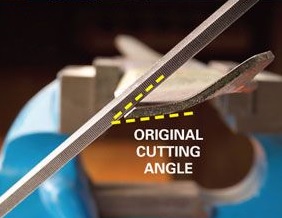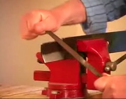 L’affilatura può essere effettuata con una smerigliatrice con disco lamellare a trama sottile oppure una lima a mano.