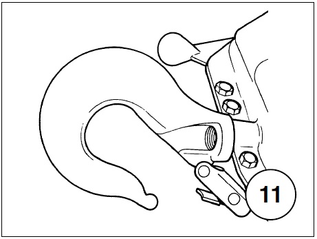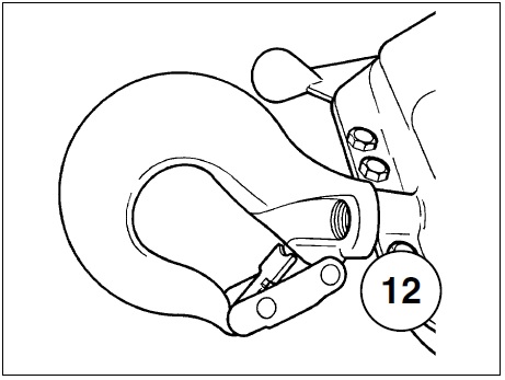 L’organo di ancoraggio dei modelli TU-8 e TU-16 è costituito da un gancio di sicurezza con moschettone (Fig.11 e 12) che deve essere sempre in posizione di chiusura, in appoggio al becco del gancio. Le stesse considerazioni sono ovviamente valide per il gancio della fune.