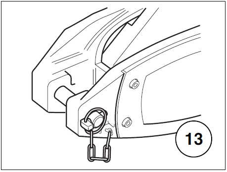 6. Riposizionare la coppiglia di sicurezza nel forellino di estremità del perno, spingendo a fondo.
