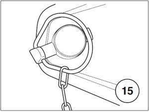 1. Fare ruotare l’anello-molla della coppiglia del perno in posizione aperta.