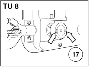 L’organo di ancoraggio dei modelli TU-32, e della serie T-500D è costituito da un perno amovibile passante nel carter dell’apparecchio (Fig.13), bloccato da una coppiglia con molla ad anello a due posizioni, aperta o chiusa (Fig.15 e 16). Vari modelli di ganci adattabili ai perni di ancoraggio, sono disponibili per i TIRFOR T-500D e TU-32.