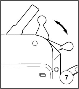 1. Tirare la maniglia di disinnesto nella stessa direzione precedentemente indicata, solo per una breve corsa.