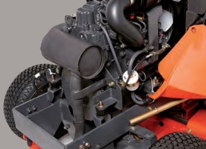 Con un motore diesel di 13,5 cv potente ed economico equivalente ad un 20 cv benzina, il trattorino Kubota GR1600-II offre maggiore potenza e risparmio di carburante rispetto ai rasaerba benzina. A differenza del sistema a cinghia che si trova sulla maggior parte dei trattorini rasaerba per il Grande Pubblico benzina, il GR1600-II dispone di una presa di forza equipaggiata di una frizione meccanica a dischi umidi e di una trasmissione tramite cardano.