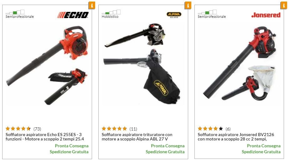 Se invece sei interessato all’acquisto di altre tipologie di soffiatori e aspiratori: