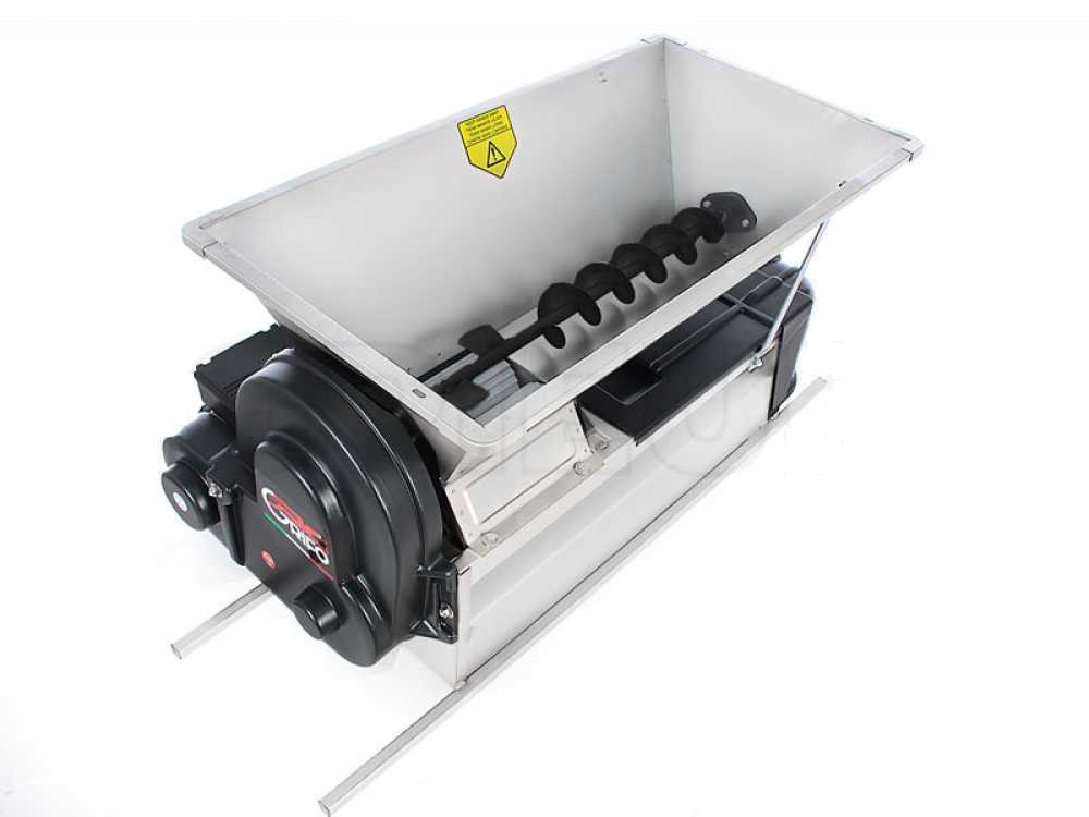 Un altro vantaggio di questa pigiatrice Grifo è la coclea di trascinamento che permette alla macchina di lavorare sempre in modo uniforme senza lasciare prodotto stagnate sulla tramoggia.