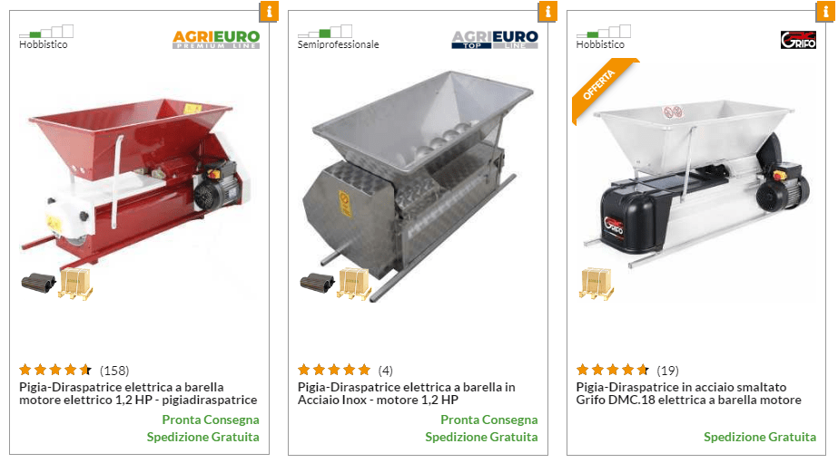 Se siete interessati a questa pigiatrice elettrica Grifo DMC.18, si può acquistare su Agrieuro al seguente link diretto: Agrieuro – Grifo DMC.18