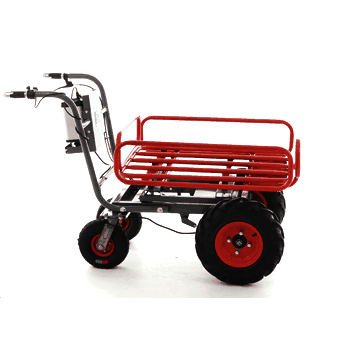Dotata di motore elettrico a batteria che permette di utilizzare la carriola per trasportare oggetti anche in luoghi chiusi come serre o luoghi chiusi.