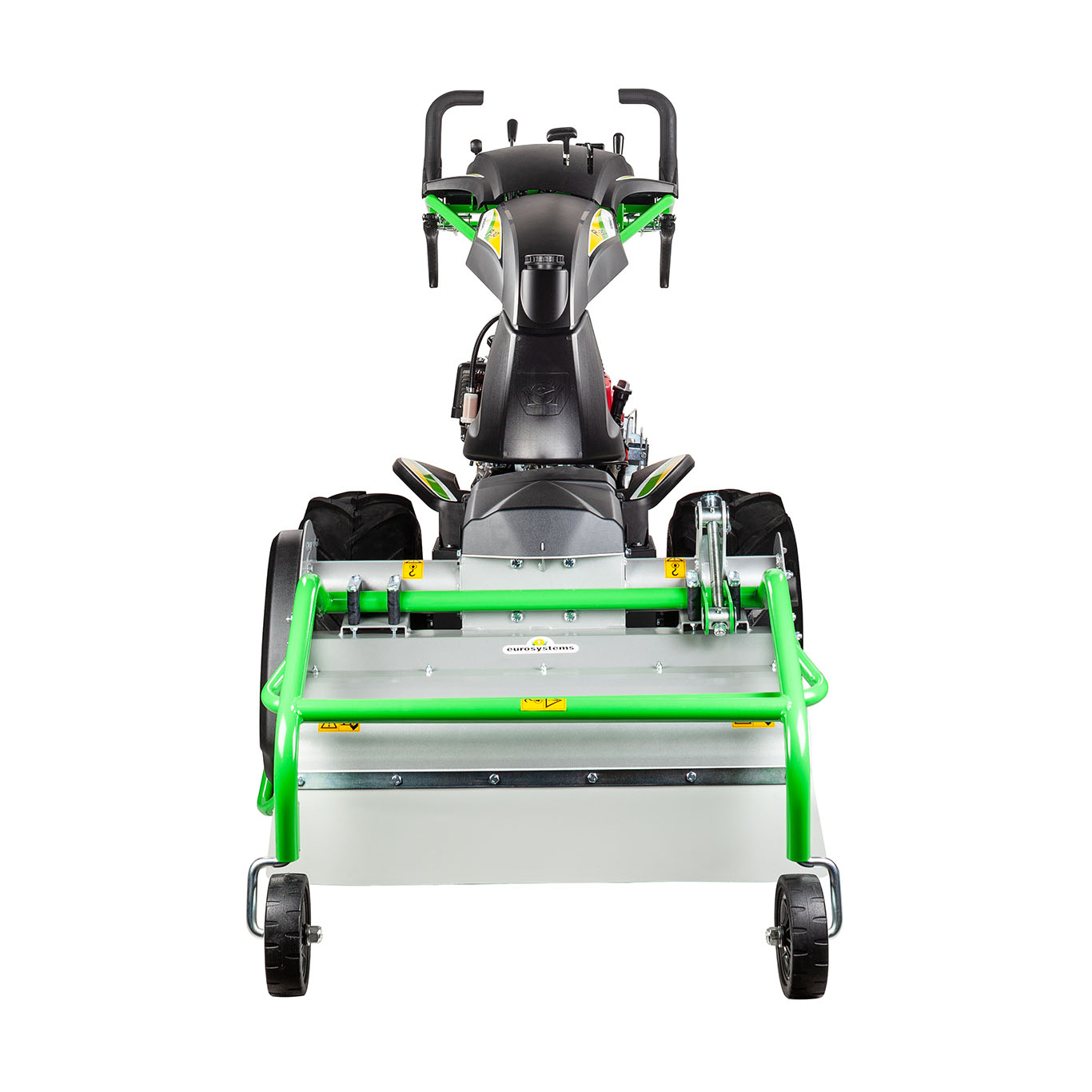 La parte interessante di questo trincia Eurosystems P130 è la possibilità di equipaggiare la macchina con altri attrezzi frontali e grazie al sistema extra-rapido di giunzione degli attrezzi, unico ed innovativo nel suo genere, permettere di passare da un accessorio all’altro con estrema semplicità.