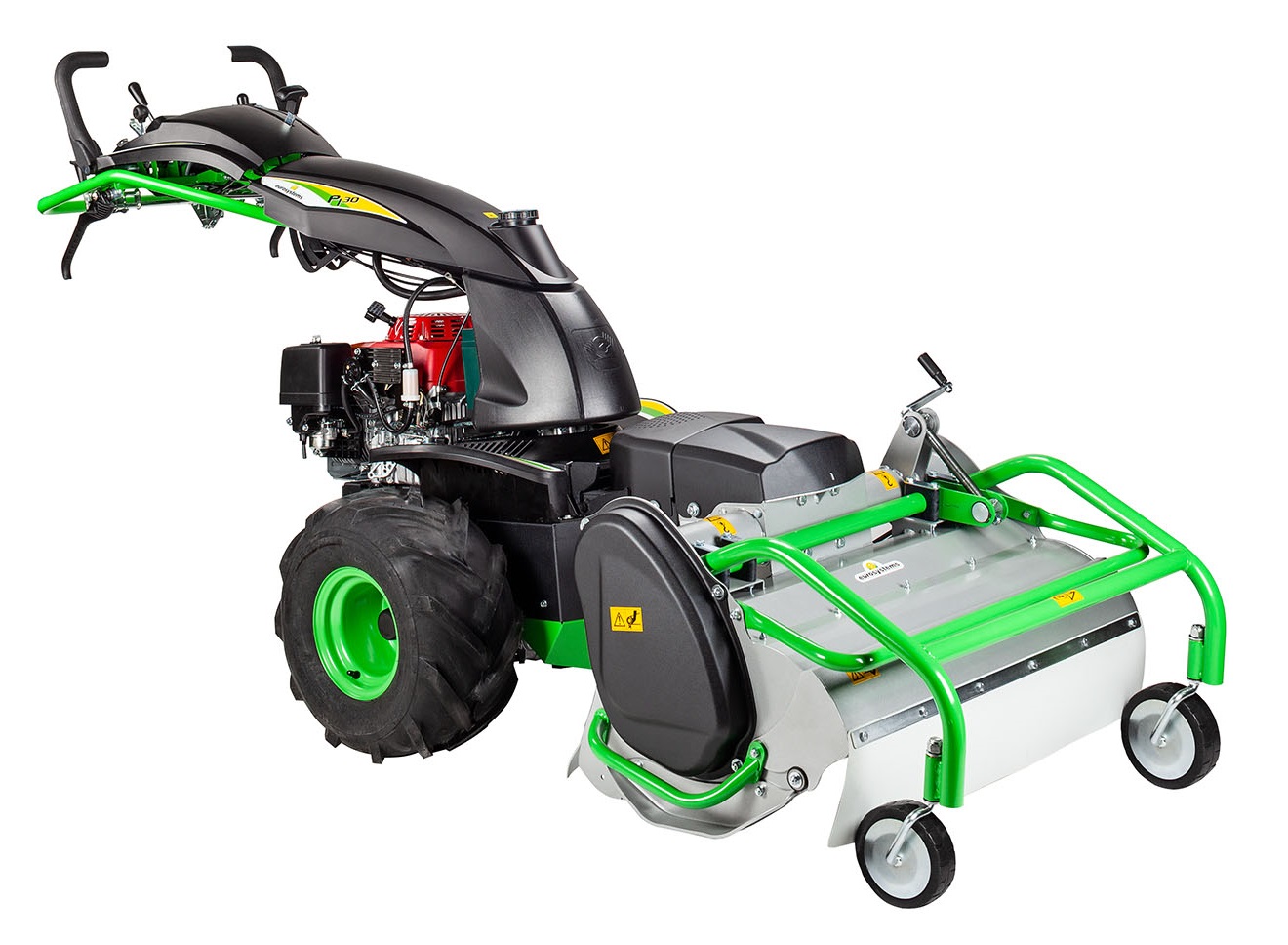 La compattezza di questo trincia con motore a scoppio consente di avere una migliore manovrabilità e migliori capacità di arrampicata su terreni anche a forte pendenza. Grazie ai coltelli verticali a Y sminuzza efficacemente rovi, sterpaglie e giovani arbusti. Il trincia P130 è dotato di un rotore diametro 30 cm ad asse orizzontale con 32 coltelli flottanti per una larghezza di lavoro di 80 cm. Le ruote pivotanti frontali in gomma piena sono ribaltabili sopra il trincia.