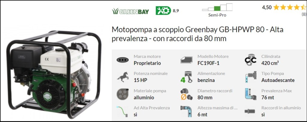 Se invece punti ad una motopompa più grande, ecco alcune delle motopompe per irrigazione Greenbay che puoi acquistare su Agrieuro: