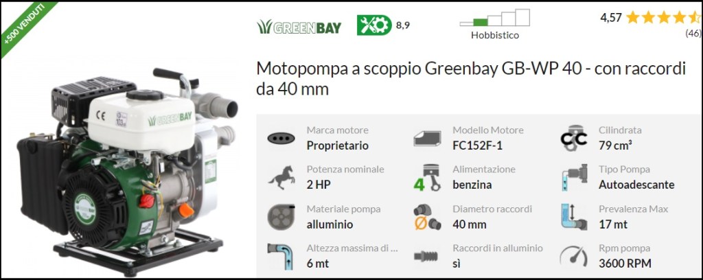 Aspetti negativi motopompa a scoppio Greenbay GB-WP 25