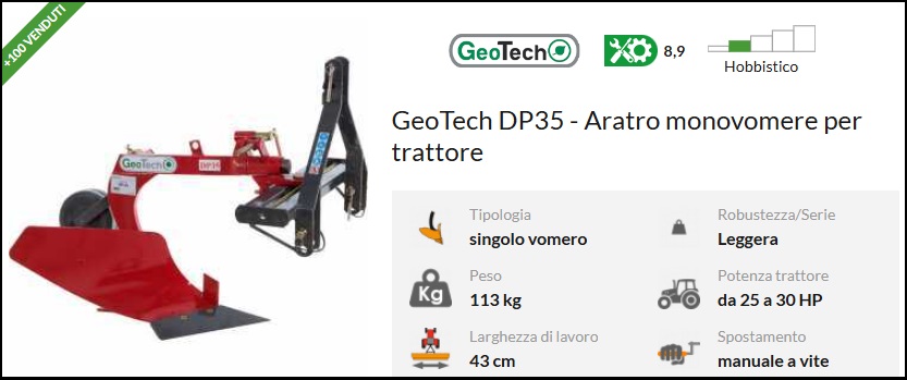 Specifiche tecniche aratro monovomere GeoTech DP35: