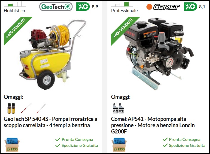 Ecco alcuni dei migliori modelli di pompe irroratrici a motore disponibili sul mercato con valore qualità prezzo molto elevato.