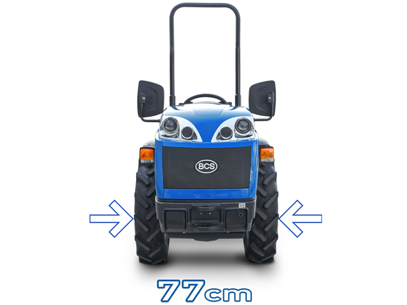 Grazie alla larghezza di soli 77 cm, questo trattore è perfetto per vigneti con interfilari ridotti e frutteti intensivi. La sterzata articolata consente di manovrare agevolmente tra le piante senza danneggiare la vegetazione.