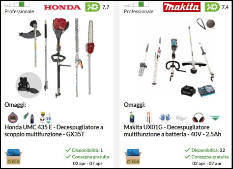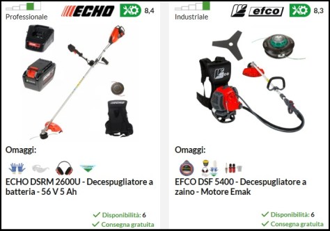 Altri decespugliatori che si possono trovare online consigliati da Hobby Attrezzature Lavoro, divisi per categoria: