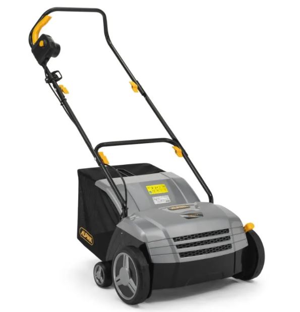 Lo scarificatore arieggiatore Alpina ASC 1.5 E è leggermente più potente e più grande rispetto al fratello minore sopra indicato. Equipaggiato con un motore elettrico da 1500 W che prevede due modalità di funzionamento intercambiabili: a 44 molle per la scarificazione, o a 20 lame per l’arieggiatura. La profondità di lavoro può essere regolata da -12 mm a +8 mm, mentre il sacco di raccolta da 50 L raccoglie i residui e il muschio.