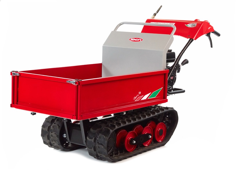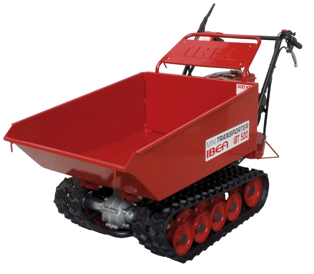 Le motocarriole Ibea IBT-500R hanno una portata di 600 Kg; Dotate anche di cassoni Dumper Zincati o verniciati, con sistema di ribaltamento idraulico anche con cassone scatolato. Il cambio a 5 rapporti. Grazie all’efficiente demoltiplica, i Minitransporter hanno la capacità di muoversi in ogni situazione e sotto ogni carico. L’installazione del cambio nella parte anteriore del telaio, garantisce il bilanciamento della macchina e facilita il movimento anche su terreni particolarmente sconnessi.