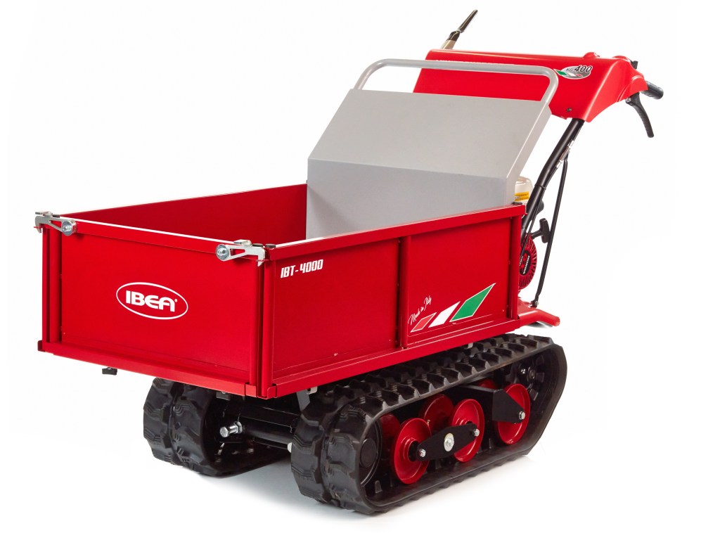 Portata della motocarriola di 400 Kg. Oltre a tutte le caratteristiche della serie IBT-3000, prevede anche il modello con cassone Dumper Zincato, indicato per il trasporto di liquami corrosivi, ed il ribaltamento idraulico anche nella versione con il cassone scatolato. I modelli IBT-4001 e IBT-4002 con 2 diverse motorizzazioni e con i differenti allestimenti (Cassone Dumper Zincato e ribaltamento Idraulico) compongono la gamma IBT-4000.