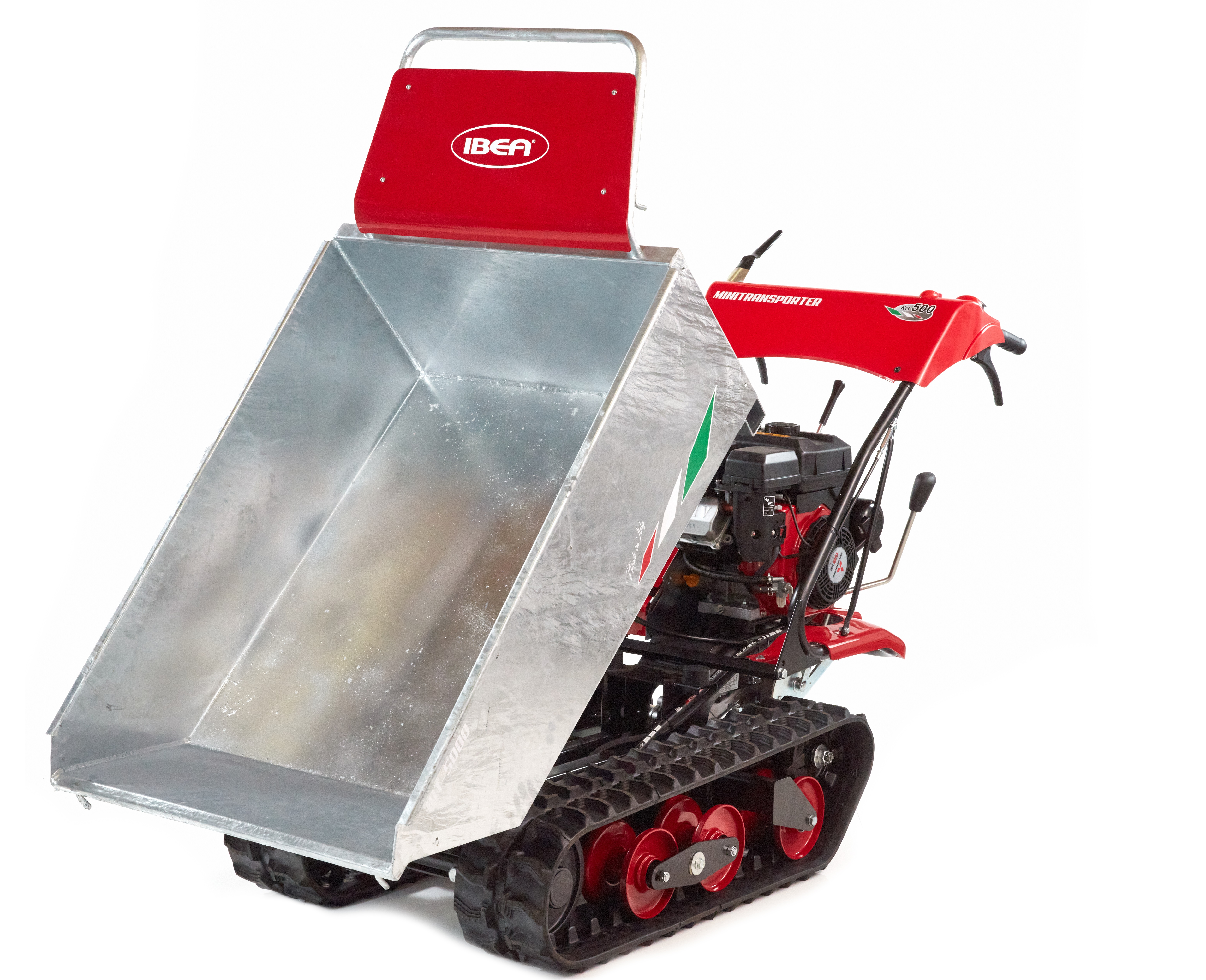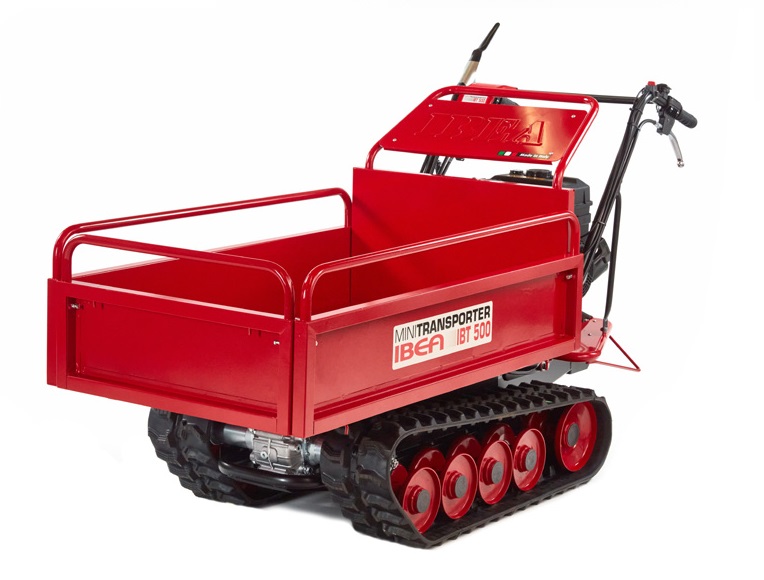 Le motocarriole Ibea IBT-500R hanno una portata di 600 Kg; Dotate anche di cassoni Dumper Zincati o verniciati, con sistema di ribaltamento idraulico anche con cassone scatolato. Il cambio a 5 rapporti. Grazie all’efficiente demoltiplica, i Minitransporter hanno la capacità di muoversi in ogni situazione e sotto ogni carico. L’installazione del cambio nella parte anteriore del telaio, garantisce il bilanciamento della macchina e facilita il movimento anche su terreni particolarmente sconnessi.