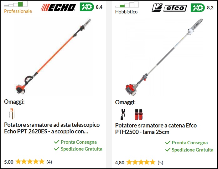 A seguire sono elencate le motoseghe da potatura ECHO, dalla più piccola alla più grande, con foto e principali caratteristiche tecniche e rivenditore consigliato al miglior prezzo sul mercato.