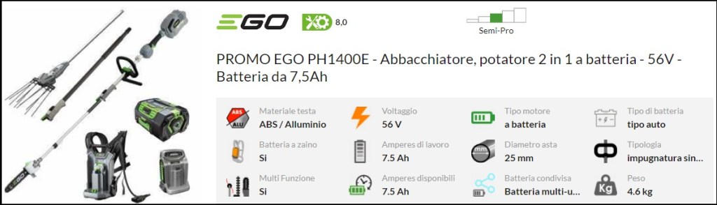 Abbacchiatore a batteria EGO PH1400E Multiutensile