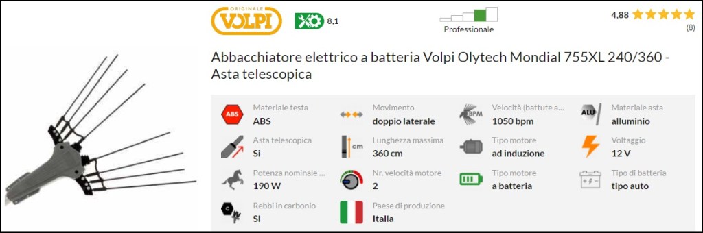 Abbacchiatore a batteria Volpi Olytech Mondial 755XL