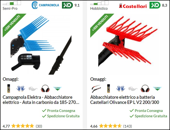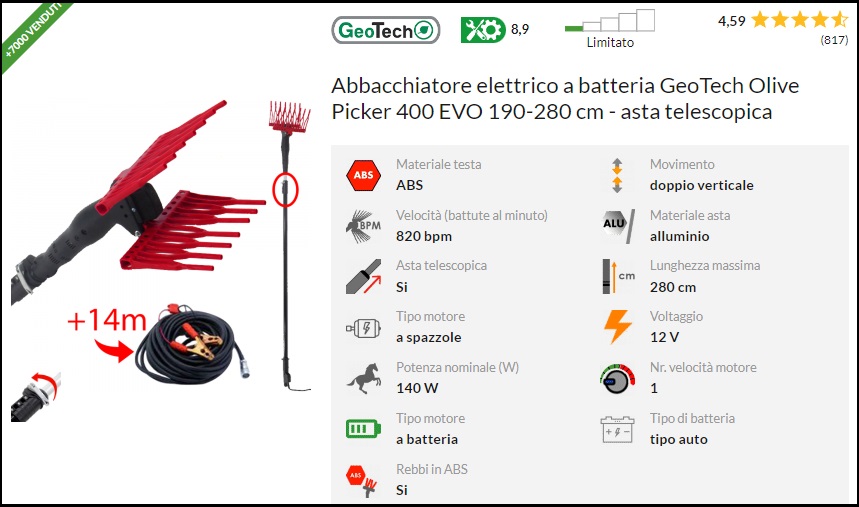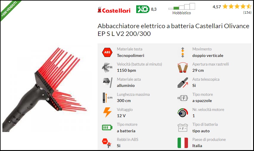 In ordine di prezzo vi proponiamo quelli che, secondo noi, sono i migliori abbacchiatori elettrici a batteria con movimento verticale considerando il fattore qualità / prezzo. Cliccando sulla foto con le caratteristiche tecniche si entra nel sito del rivenditore con il prezzo più vantaggioso per quel modello di abbacchiatore.