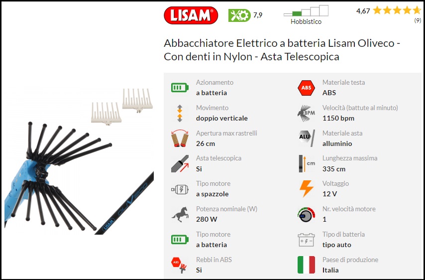 Per confrontare altri modelli di abbacchiatori e altre attrezzature per la raccolta olive vai alla nostra pagina dedicata all’olivicoltura: