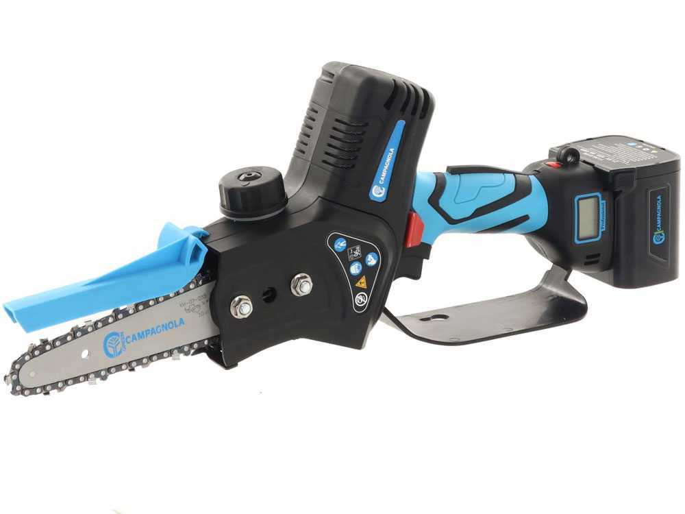 La comoda batteria plug-in permette di lavorare agevolmente ed effettuare tagli veloci e precisi anche grazie al grilletto con velocità variabile. Con dispositivo manuale di lubrificazione, che favorisce un’adeguata scorrevolezza della catena, e impugnatura antiscivolo con interruttore di sicurezza.