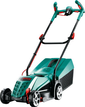 Rasaerba elettrici Bosch rotak 32 con motore Powerdrive da 1200 watt e larghezza di taglio da 32 cm.
