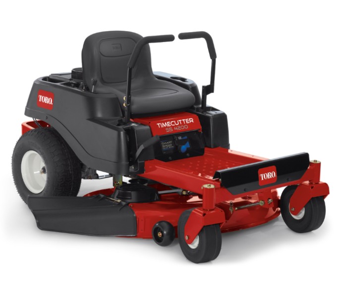 Rider rasaerba TORO Timecutter con motore a benzina Kawasaky da 18 cv e larghezza di taglio da 107 cm.