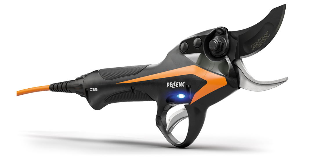 Le forbici a batteria Pellenc C35 e Pellenc C45 sono potenti e leggere, dotate di una testa di taglio che offre una capacità di potatura di 35 mm (modello C35) o di 45 mm (modello C45).